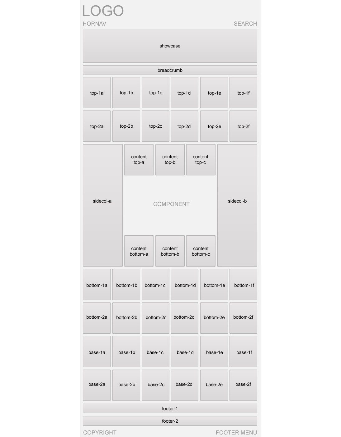Schemat blokowy prezentuje domyślny układ (siatkę) elementów szablonu Joomla!.