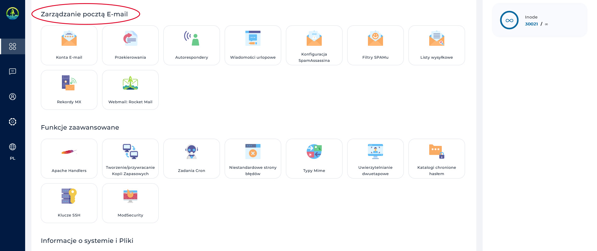 Zarządzanie całą strefą pocztową, tj.: adresami e-mail, aliasami, filtrami, listami mailingowymi, filtrem antyspamowym, itp. możliwe jest po zalogowaniu do panelu DirectAdmin w sekcji "Zarządzanie pocztą E-mail":